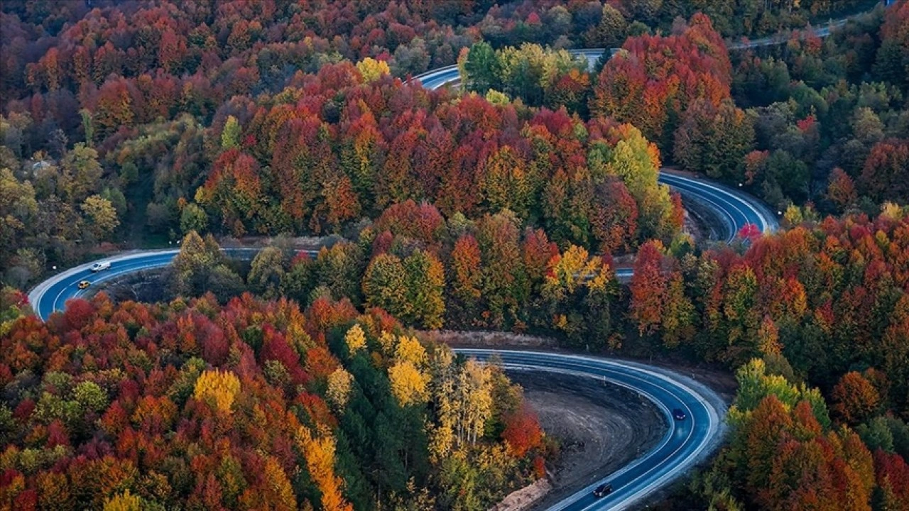İç Ege'de yer alan yüzde 65'i ormanlarla kaplı Domaniç'te sonbahar, kıvrımlı yollarla bütünleşen ağaçların göz alıcı renkleriyle görsel şölen yaşatıyor.