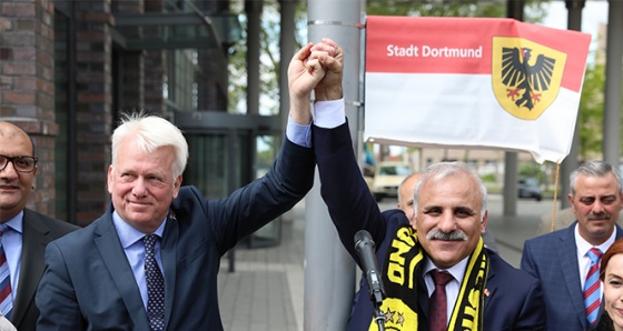 İki şehir arasındaki bağlar artıyorDortmund temaslarının son gününde ziyarete konu meydanın açılış törenine katılan Başkan Zorluoğlu, burada yaptığı konuşmada Dortmund'ta bulunmaktan büyük mutluluk ve onur duyduğunu ifade etti. Kardeş şehir protokolünün imzalanmasının üzerinden geçen 5 yılda Trabzon ve Dortmund arasındaki ortaklıkta hatırı sayılır mesafe aldıklarını kaydeden Zorluoğlu, her iki tarafın yöneticileri olarak yapacakları çalışmalarla kardeş şehir ilişkisinin çok daha kurumsal bir yapıya kavuşacağından emin olduğunu söyledi. İki şehir arasında birlikte hareket edilebilecek pek çok alan bulunduğuna işaret eden Zorluoğlu, “Eğitimden kültüre, bilimden spora, kültürden ekonomi ve ticarete kadar birçok alanda birlikte gerçekleştirebileceğimiz faaliyetler bulunduğunu ve birbirimizden öğreneceğimiz çok şey olduğunu düşünüyorum. Bugün açılışını yaptığımız Dortmund Trabzon Meydanı, sadece ilişkilerimize yeni bir ivme kazandırmayacak. Aynı zamanda iki şehrin halklarını da birbirine daha fazla yakınlaştıracaktır” dedi.