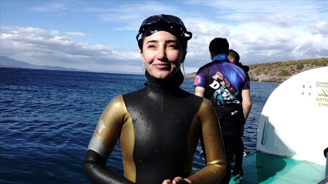 Dünyada bir eşi İtalya'nın Portofino kentinde bulunan Ayvalık'ın kırmızı mercanları için 30 metre tüpsüz dalış yapan milli sporcu Şahika Ercümen, mercanların güzelliğini bir kez daha gözler önüne serdi.