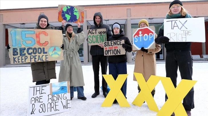 Davos'ta WEF'in düzenlendiği alanın yakınında toplanan, WEF karşıtı ve iklim değişikliğine dikkati çeken pankartlar taşıyan bir grup aktivist, bu konuda adım atmayan hükümetleri ve diğer yetkilileri eleştirdi.