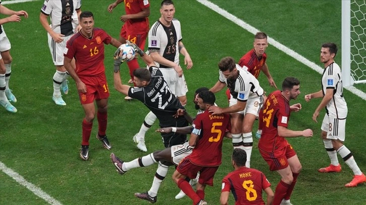 İlk yarının en net fırsatını İspanya 7. dakikada yakaladı. Paslarla rakip kaleye yaklaşan İspanyol oyuncular, topu ceza sahası önündeki Olmo ile buluşturdu. Olmo'nun sol çaprazdan çok sert şutunda, kaleci Neuer'in tokatladığı meşin yuvarlak, önce üst direğe çarptı ardından da kornere çıktı.