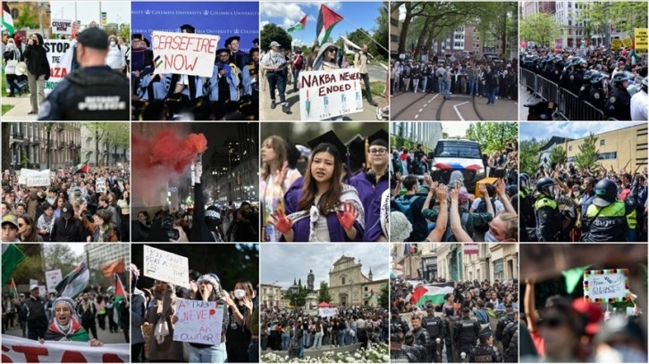ABD'deki üniversitelerde başlayıp gösterilerin yeni merkezi haline gelen Avrupa dahil dünyada birçok üniversitede Filistin'e destek gösterileri tüm hızıyla devam ediyor.