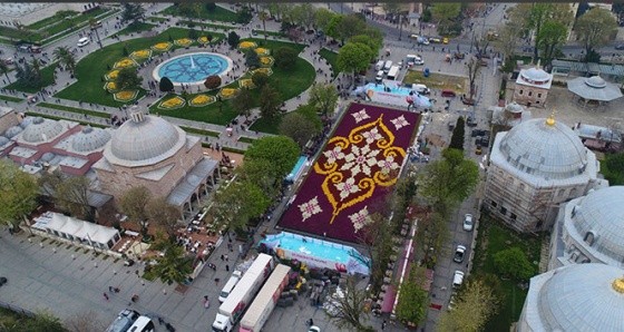 İstanbul Büyükşehir Belediyesi, 13. İstanbul Lale Festivali kapsamında tüm şehri adeta laleye bürüdü. Festival kapsamında Şehrin önemli simgelerinden Sultanahmet Meydanı’nda sergilenmeye başlanan 565 Bin laleden oluşan Dünyanın en büyük lale halisi motifi İstanbulluların beğenisine sunuldu. Dev lale halısı İstanbul tarihi yarımada manzarası ile havadan çekilen görüntülerde kendine hayran bıraktı.