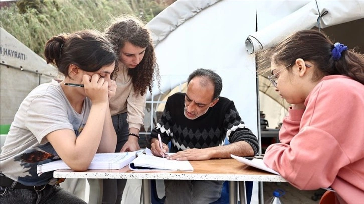 "Asrın felaketi" olarak nitelenen 6 Şubat'taki depremlerin ardından Samandağ'da gönüllü öğretmenler, Türkiye'nin farklı illerindeki öğretmen arkadaşlarından temin ettikleri 7 çadırı öğrenciler için kurdu.
