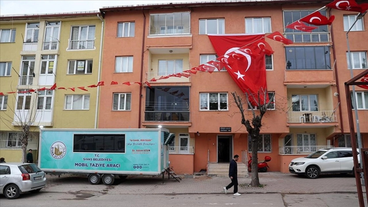 Babaevi bayraklarla donatılırken, evin önüne taziye aracı konuldu.