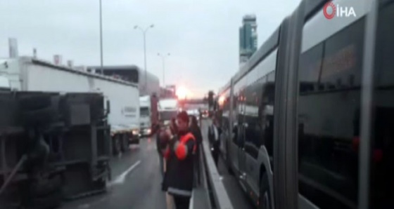 E-5 karayolu Beylikdüzü mevkii Edirne istikametinde meydana geldi. Edinilen bilgiye göre sürücünün direksiyon hakimiyetini kaybetmesi sonucunda bir kamyon devrildi. Kaza nedeniyle E-5 Edirne istikameti trafiğe kapandı. Edinilen bilgiye göre, seyir halindeki kamyonun lastiğinin yolda yarı açık vaziyetteki rögar deliğine düşmesi sonucu sürücü direksiyon hakimiyetini kaybetti. Sürünün direksiyon hakimiyetini kaybetmesi sonucunda kamyonet bir otomobilin üstüne devrilip yan yattı. İhbar üzerine olay yerine çok sayıda polis ekibi sevk edildi. Olay yerine gelen ekipler çevrede önlem aldı. Devrilen kamyon vinç yardımıyla yoldan kaldırılmaya çalışılıyor. Kazayı kamyondakiler ve otomobildekiler yara almadan atlattı.