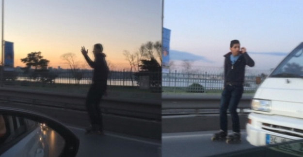 E-5 Karayolu Küçükçekmece mevkiinde, hızla akan trafikte kulaklıkla müzik dinleyerek ilerleyen patenli genç pes dedirtti. Kendisini uyaran sürücülere el kol hareketi yapan genç, bu sorumsuzluğun bedelini az daha canıyla ödüyordu.