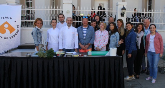 İzmir’de Çeşme, Alaçatı, Şirince, Efes Antik Kenti gibi farklı ilçelerde çekim yapan ekip, Ege mutfağının bilimsel yönünü İzmir Ekonomi Üniversitesi’nde keşfetti. İEÜ Mutfak Sanatları ve Yönetimi Bölümü Eğitmen Şefi Kamiloğlu, program için Tarhana, LorluKabakçiçeği Kızartması, Turp otu, Arapsaçı ve Deniz Börülceli Ege Otları Salatası yatağında Ceviz Kaplı Jumbo Karides, Balıklı Yaprak Sarma, Midye Dolma ve Fırınlanmış Tahin Helvadan oluşan bir menü hazırladı. Çekimlerde, İzmir ve Ege yemek kültürü üzerine bilgiler veren Eğitmen Şef Kamiloğlu, “Ege mutfağına Ruslar çok yabancı. Çok zengin deniz ve ot çeşitlerimiz var. Akdeniz beslenme şekli çok ilgilerini çekti. Zeytinyağı, deniz ürünleri, sebzeler, Ege otları, beslenmemizin büyük bir parçasını oluşturuyor. Pişirilme tarzlarını ve hikâyelerini anlattığımız bir program oldu. Mutfak sanatları alanında uluslararası eğitim vermemiz de çok dikkatlerini çekti” dedi.