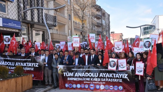 Şırnak'ta da Memur-Sen İl Başkanlığınca, Türk Silahlı Kuvvetlerinin (TSK) yürüttüğü Zeytin Dalı Harekatı'na destek için Atatürk Mahallesi Sanat Sokağı'nda yapılan açıklamada Türk bayrakları ve "Tüm Anadolu ayaktayız emperyalizme karşı savaştayız, teröre geçit yok, Mehmetçiğe selam desteğe devam, katil ABD iş birlikçi PKK/PYD" dövizleri açıldı.