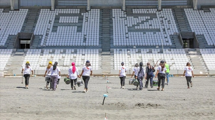 İnşaat sektöründe istihdam edilecek kadınlar farkındalık oluşturmak amacıyla Gençlik ve Spor Bakanlığınca Elazığ'a kazandırılan, inşasında sona yaklaşılan UEFA ve FIFA standartlarındaki modern statta yürütülen çalışmalara boya badana yaparak bir günlük destek sağladı.