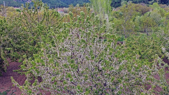"Eldivan'ın kirazı, dosta gider birazı, artık çekemez oldum, bana ettiğin nazı" dizeleriyle türkülere konu olan, lezzetiyle farklı bir tadı bulunan Eldivan'daki kiraz bahçeleri, açan beyaz çiçekleriyle güzelliklerine güzellik kattı.