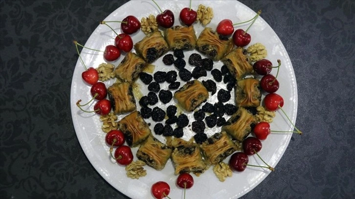 Baklava ustası Ömer Demiroğlu da uzun çalışmalar sonucunda kirazlı baklavanın lezzetini yakaladıklarını dile getirerek "Hamurunu 15-20 dakika yoğuruyoruz. Yufkası açılıyor, kiraz kurusu ile cevizi karıştırıp hazır hale getiriyoruz. Şeklini de kiraz sepeti şeklinde yapıyoruz." diye konuştu.