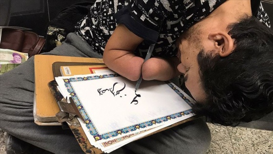 İranlı Şehram Ahmedi, 15 yaşında geçirdiği kaza sonucu ellerini kaybetmesine rağmen hayata tutunmaktan vazgeçmedi ve 25 yaşından sonra kollarıyla hat sanatı icra etmeye başladı.