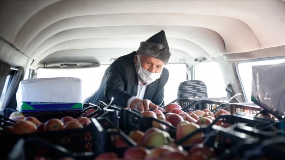 Hafif ticari aracına yüklediği elmalarla yaklaşık 600 kilometre yol kat ederek Denizli'den Kayseri'ye gelen Yılmaz, kent girişinde açıklama yaptı.