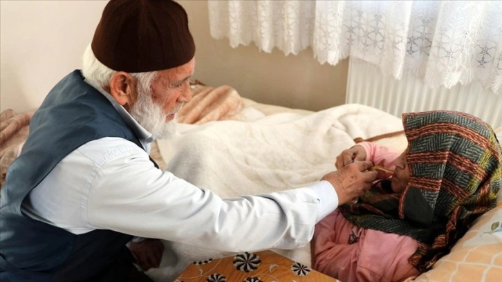 Geçirdiği felç nedeniyle 4 yıldır yürüyemeyen ve konuşma güçlüğü çeken 73 yaşındaki eşi Hanım Kılıç ile adeta bebek gibi ilgilenen Hüseyin Kılıç, her sabah eşinin kahvaltısını hazırlıyor, bakımını yapıp diğer günlük ihtiyaçlarını karşılıyor.
