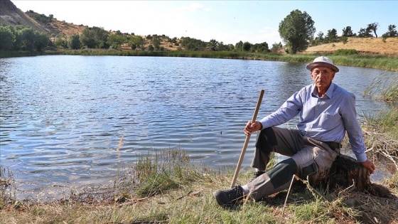 Çocukluğuna dair güzel anılarının olduğu, huzur duyduğu Sülük Gölü kenarında çeşme yaptıran, ocak kuran, duvar örerek, oturma alanları yapan, meyve ağaçları diken Ergül, bakımını yaptığı gölün kenarındaki çöpleri de temizliyor.