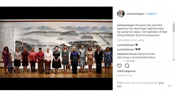 "emineerdogan" adlı Instagram hesabındaki ilk paylaşımında, "Dünyanın her yanından, toplumun her kesiminden kadınlarımızla her zaman bir olduk." ifadesini kullanan Emine Erdoğan, tüm kadınların 8 Mart Dünya Kadınlar Günü'nü tebrik etti.