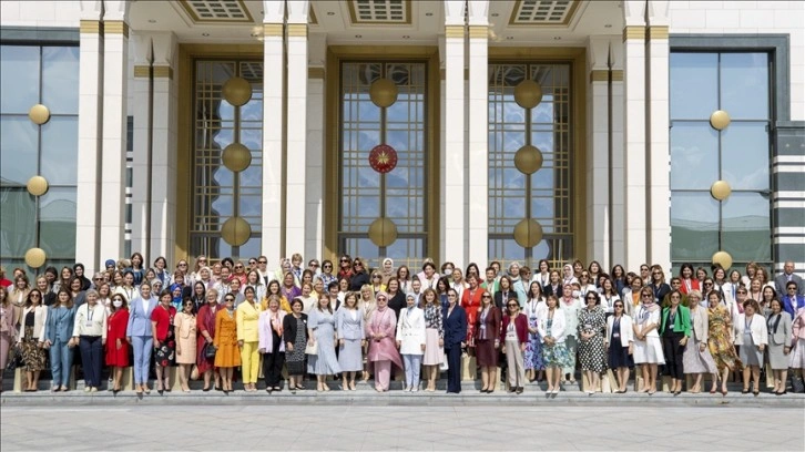 Cumhurbaşkanlığı Külliyesi'nde gerçekleştirilen yemek öncesi Dışişleri Bakanı Mevlüt Çavuşoğlu'nun eşi Hülya Çavuşoğlu, teşekkür konuşması yaptı.