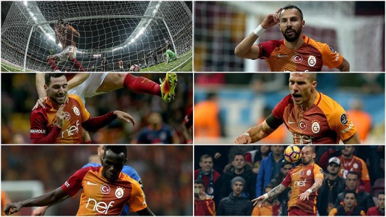 Sarı-kırmızılıların forvet hattında görev yapan Yasin Öztekin 7, Eren Derdiyok 6, Armindo Bruma 5, Lukas Podolski 3, Wesley Sneijder ve Sinan Gümüş birer kez rakip fileleri havalandırdı.