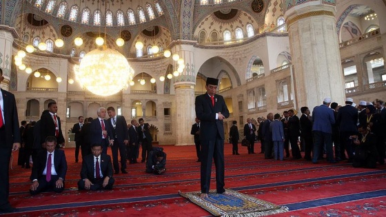 Camide namaz kılan konuk Cumhurbaşkanı Widodo ve eşi Iriana Joko Widodo, daha sonra cami görevlilerince okunan Kur’an-ı Kerim'i dinledi.