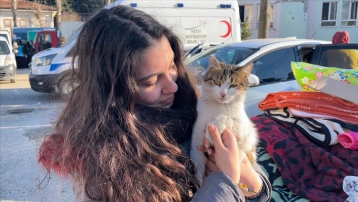 Sudenur Sürer, AA muhabirine, enkaz arasında buldukları kediye elini uzattığını, korktuğu belli olan kedinin de patisini elinin üstüne koyduğunu söyledi.