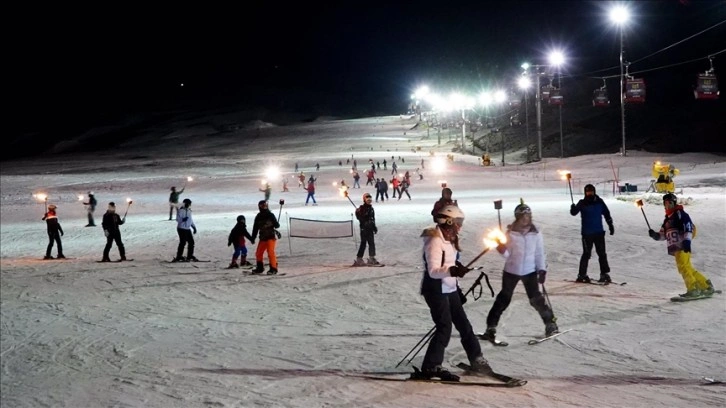 Mart ayında 100 santimetreyi bulan kar kalınlığı ile kayak merkezi, gece boyunca da özel olarak aydınlatılan pistte misafirlerini ağırlıyor.