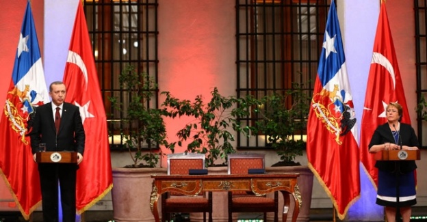 Şili Devlet Başkanı Michelle Bachelet ile birlikte düzenlediği ortak basın toplantısında konuşan Cumhurbaşkanı Erdoğan, ziyaretinin 21 yıl aradan sonra Türkiye’den Şili’ye cumhurbaşkanlığı seviyesinde ilk ziyareti oluşturduğunu ifade etti. Erdoğan, “Bu yönüyle de benim için çok çok önemli, son derece anlamlıdır. Maalesef 2010 yılında Başbakan sıfatıyla Şili’ye gerçekleştirdiğim ziyareti beklenmedik bir gelişme nedeniyle yarıda kesmek zorunda kalmıştım. O zaman yarım kalan bu ziyareti bu kez Cumhurbaşkanı sıfatıyla tamamlıyorum” dedi.