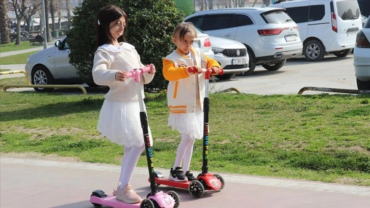 Şehit Kübra Doğanay İmam Hatip Ortaokulu 8'inci sınıf öğrencisi İremsu ve 5'inci sınıfa kayıtlı Zeynep, evde eğitim imkanından yararlanıyor, hayatlarını kolaylaştıracak fizik tedavi süreçlerine katılıyor.