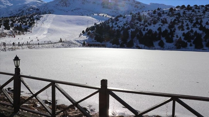 Kente yaklaşık 15 kilometre uzaklıktaki kayak merkezinde bulunan Ardıçlı Gölü'nün yüzeyi, hava sıcaklığının sıfırın altına düşmesiyle buz tuttu.