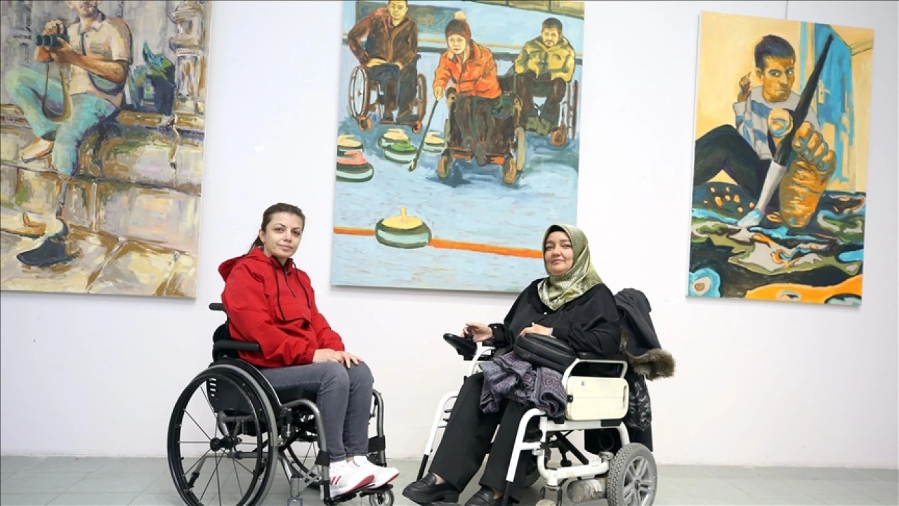 Atatürk Üniversitesi Sanat Galerisi'nde gerçekleştirilen sergi açılışına, resmedilen engelliler ile aileleri katıldı.