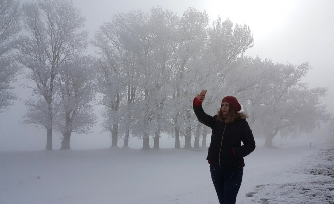 Gece saatlerinde eksi 15 dereceyi gören Erzurum’da yol kenarlarında bulunan ağaçlara düşen kırağı adeta görsel şölen oluşturdu. Oluşan doğa güzelliğini yakından görme fırsatı bulan vatandaşlar hatıra fotoğrafı çektirmeyi de ihmal etmedi. Gözün görebildiği her yerin beyaza büründüğü alanlarda dağlarla birleşen düzlük ova içerisinde bulunan birkaç ağaç da adeta dağ ve ovanın beyazlığını bozmamak için beyaza bürünmüş bir görüntü oluşturuyor. Kırağı düşen ağaçların görüntüsü görenleri etkilerken, bu manzaraya tanıklık eden vatandaşlar, "Erzurum kış aylarında büründüğü beyaz ile doyumsuz manzaralar oluşturuyor, bu da onlardan sadece birisi. Soğuk havaya aldırış etmeden bu manzara saatlerce seyredilebilir" dedi.