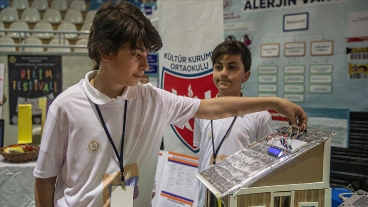 Öğrencilerden Arslan, gazetecilere, 544 kare kod projesi olarak antikar ısıtma sistemi yaptıklarını söyledi.