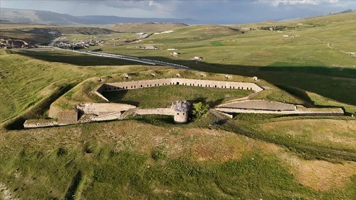 Erzurum-Kars kara yolunun 5. kilometresinde bulunan Paşapınarı bölgesindeki tepede konumlandırılan ve dron ile görüntülenen tabya, tüm ihtişamıyla tarihin izlerini taşıyor.