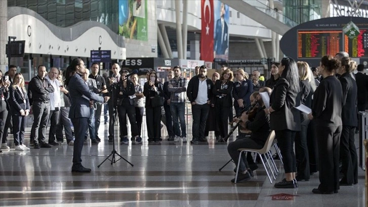 Havalimanı çalışanlarının yanı sıra yolcuların da katılım gösterdiği etkinlikte, Gazi Mustafa Kemal'in hayatına dair fotoğrafların yer aldığı "Atatürk Fotoğrafları Sergisi" açıldı.