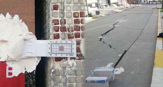 Esenyurt'ta çatlamaların olduğu bina ve sokaklarda ölçüm aletleri dikkat çekti
