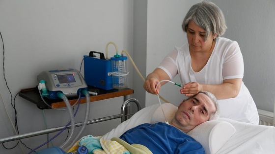 İzmir'de 11 yıl önce ALS teşhisi konulan ve solunum cihazıyla hayatını sürdürebilen eşini yaşama bağlamaya çalışan Ayşe Cansaran, sağlığına kavuşmasını hayal ettiği kocasının elini bir an olsun bırakmıyor.