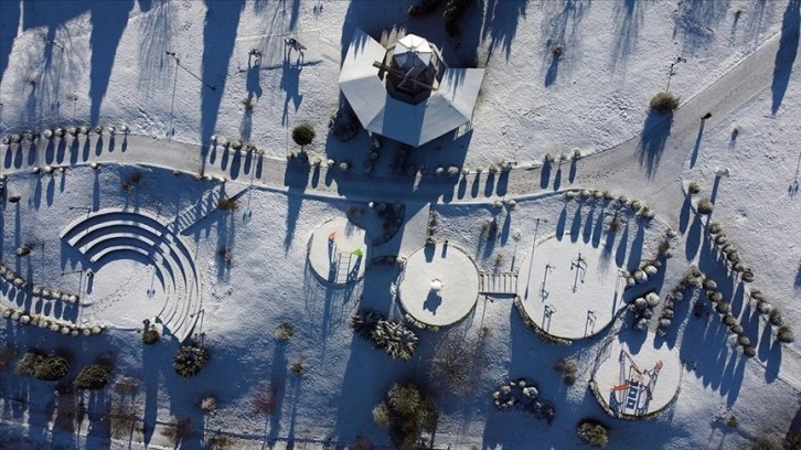 Kent merkezinin karlı manzaraları dron görüntülerine de yansıdı.