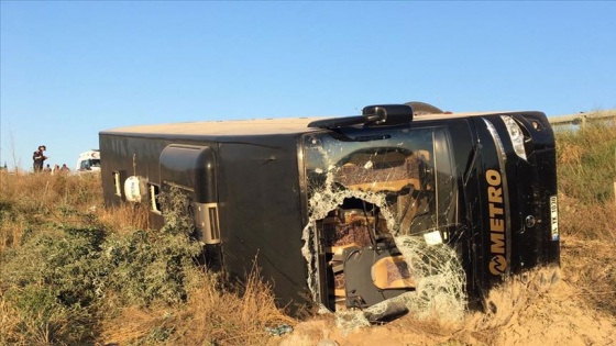 Eskişehir'in Sivrihisar ilçesinde yolcu otobüsünün şarampole devrilmesi sonucu 13 kişi yaralandı.