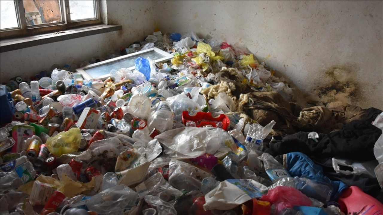 Ekipler, evden teneke, pet şişe, plastik poşet ve çeşitli ambalaj atıkları ile plastik eşyalardan oluşan 6 kamyon çöp çıkardı.