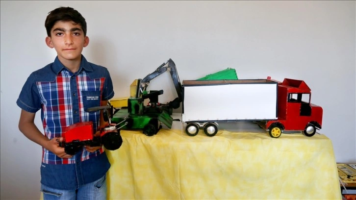 Malatya'nın Yazıhan ilçesinde evde bulduğu atıl malzemelerle traktör, kamyon, kepçe gibi araçlar yapan 13 yaşındaki Mustafa Kemal Parlak, kendini geliştirip TEKNOFEST'e katılmak istiyor.