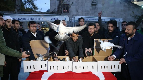 Gruptakiler daha sonra özgürlüğü temsilen güvercin uçurdu.