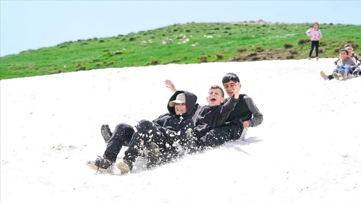 Kışın kar kalınlığının 10 metreyi bulduğu yayla, temmuz olmasına rağmen erimeyen kar tabakası ile çocuklara yaz tatilinde eğlenceli zaman geçirmeleri için fırsat sunuyor.