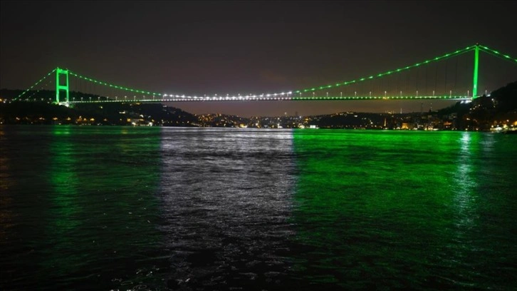 Önemli günlerde renk ve ışık gösterileriyle aydınlatılan İstanbul’un simge noktalarından Fatih Sultan Mehmet (FSM) Köprüsü, bu kez Pakistan'da 14 Ağustos 1947'de kazanılan bağımsızlığın 75. yılı dolayısıyla Pakistan bayrağının renklerine büründü.