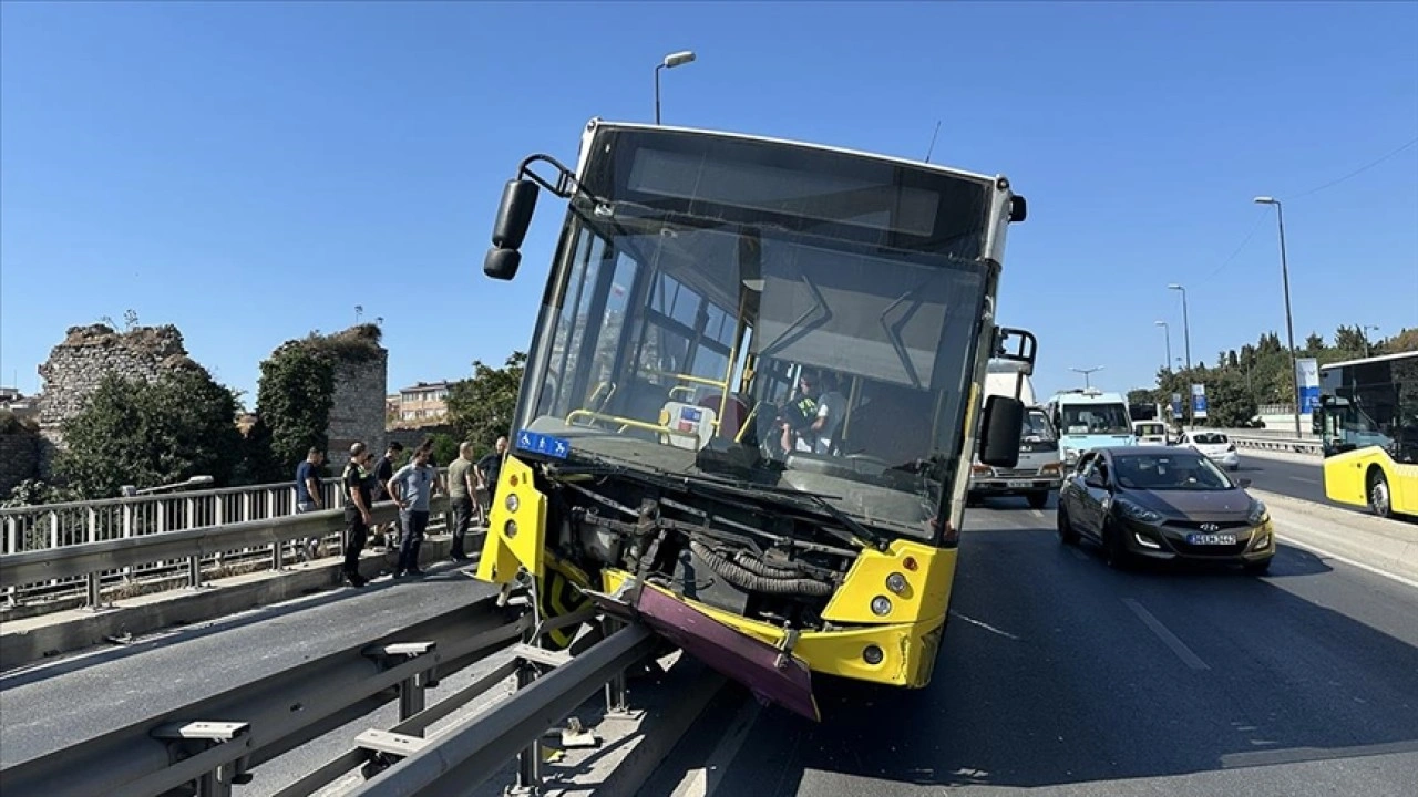 Topkapı Mahallesi 10'uncu Yıl Caddesi'nde ilerleyen, içinde yolcu bulunmayan İETT otobüsü, sürücünün kontrolünü kaybetmesi üzerine önündeki araca çarptı.