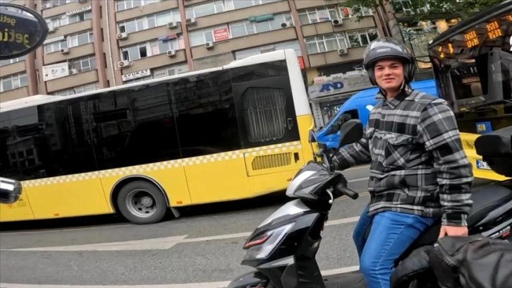 Fatih'te trafikte seyir halindeki motosikletliye annesinin kullandığı otomobilin çarpma anı ve sonrasında yaşananlar başka bir motosikletlinin kask kamerasınca kaydedildi.