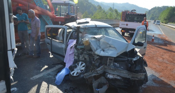 Kaza, Samsun-Ordu karayolu Bolaman Mahallesi’nde meydana geldi. Edinilen bilgiye göre, Volkan S. (23) yönetimindeki 34 BL 2790 plakalı otomobil, Mehmet Bülbül idaresindeki 55 KK 631 plakalı fındık patozu olan traktöre çarptı. Ardından aynı istikamette seyir halinde bulunan İsmail Kesimal’in kullandığı 53 HD 444 plakalı yolcu otobüsüne çarparak duran otomobilde bulunan Ali Keser (47) hayatını kaybederken, sürücü Volkan S. ve Ahmet Keser (52) ağır yaralandı. Yaralılar, 112 Acil Servis ekiplerinin olay yerinde yapılan ilk müdahalesinin ardından Fatsa Devlet Hastanesi’ne kaldırıldı. Yaralılardan Ahmet Keser de hastanede yapılan tüm müdahalelere rağmen kurtarılamazken, sürücü Volkan S.'nin durumunun ciddiyetini koruduğu öğrenildi. Yolcu otobüsü şoförü İsmail Kesimal, “Otomobil patozun arkasına vurduktan sonra önümüze düştü. Bize çarparak durdu. Biz de hemen durduk” dedi.