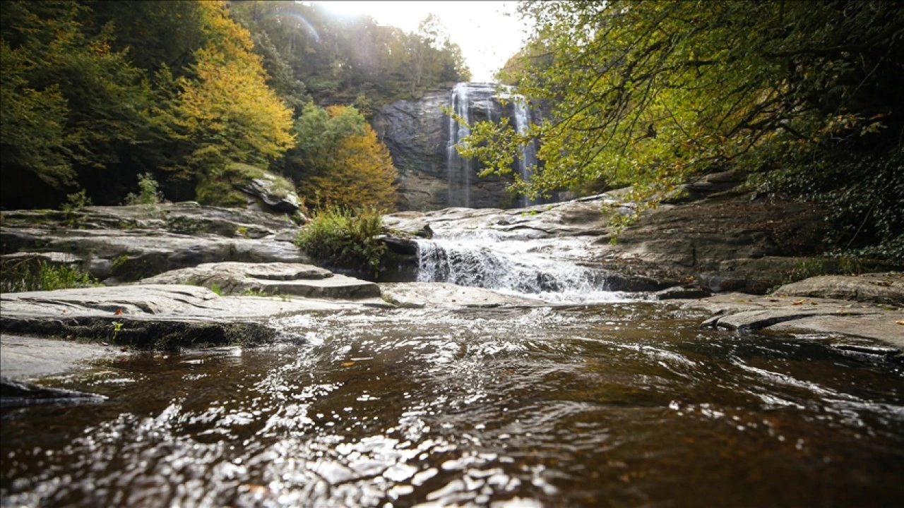 Sonbaharda yeşil ve sarının tonlarıyla ziyaretçilerini karşılayan şelale, dronla da havadan görüntülendi.