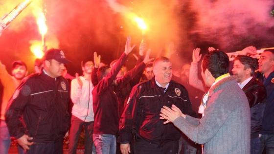 Taraftarların, "Türk polisi sen çok yaşa, canım feda olsun sana" ve "Şehitler ölmez vatan bölünmez" sloganını duyan polis memurları, büyük şaşkınlık ve mutluluk yaşadı. Polislerin bu anlamlı gününü kutlayan taraftarlar, onlara çiçek verdi.