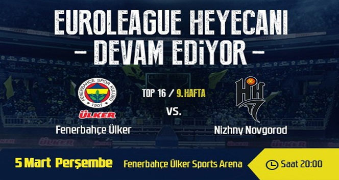 Fenerbahçe Ülker, Euroleague Top 16 turundaki dokuzuncu maçında bu akşam, Rusya temsilcisi Nizhny Novgorod’u konuk edecek. Hedef, Euroleague’deki 5 maçlık galibiyet serisini 6’ya çıkarmak.