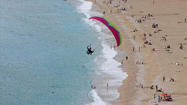 Havanın 23, deniz suyu sıcaklığının 22 derece ölçüldüğü turistik ilçede, özellikle Ölüdeniz sahilinde yoğunluk yaşandı.